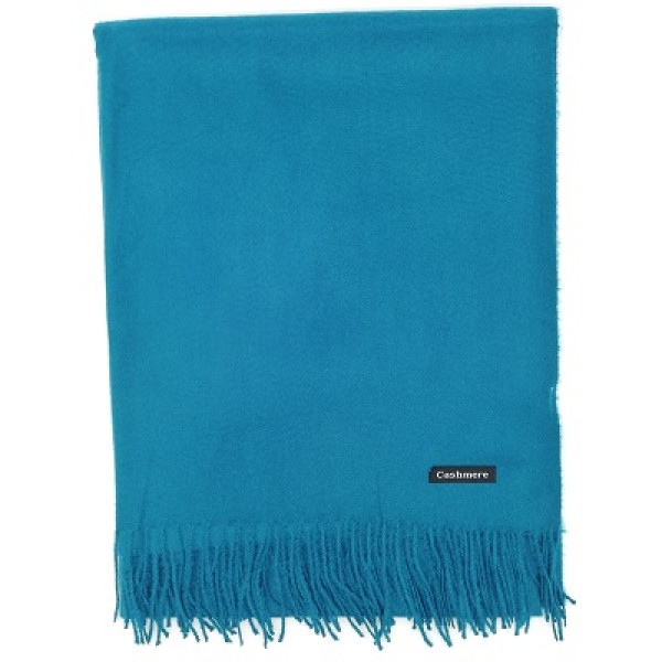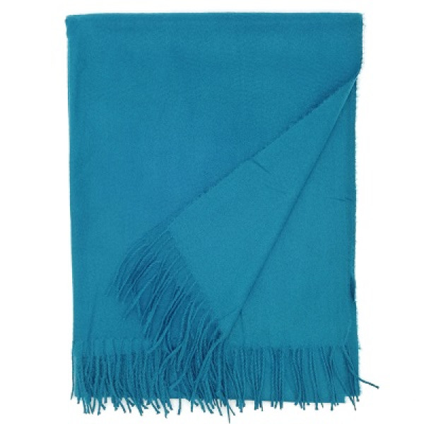 Дамски комплект в синьо-Кашмирен шал и ръкавици с естествен пух