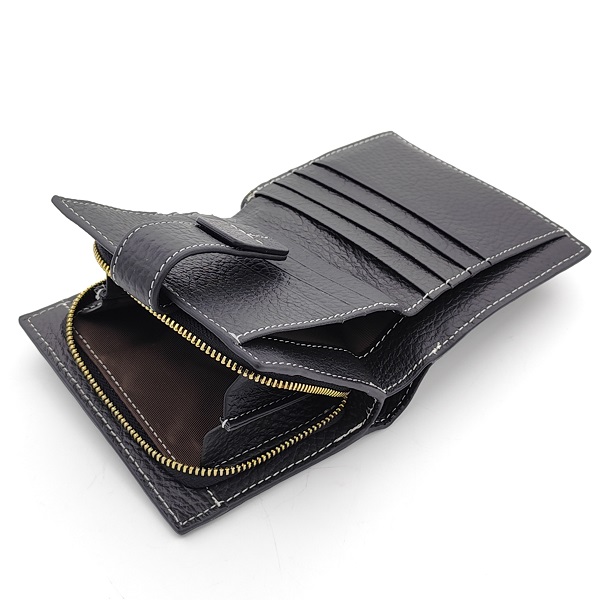 Дамски портфейл от естествена кожа със закопчаване и цип в черно