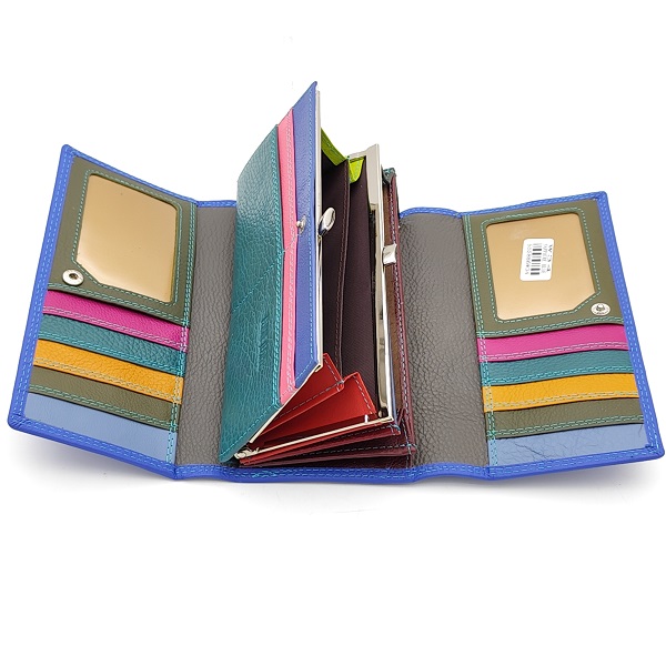 Дамски портмоне от естествена кожа турско синьо