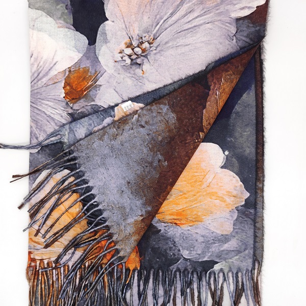 Десен: Флорални мотиви в сиво, бяло и оранжево