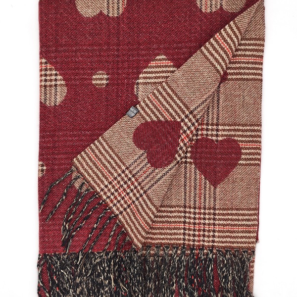 Дамски зимен комплект в бордо и бежово- Шал, шапка и ръкавици