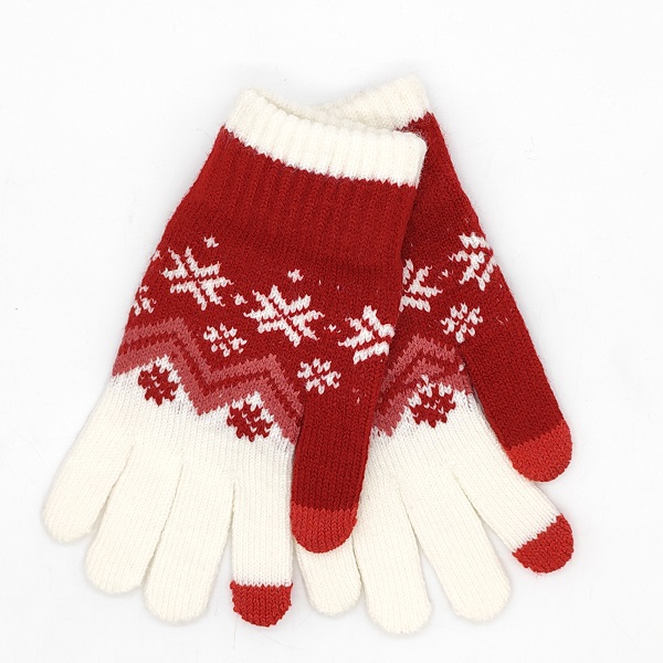 Дамски зимни ръкавици със снежинки в червено и бяло