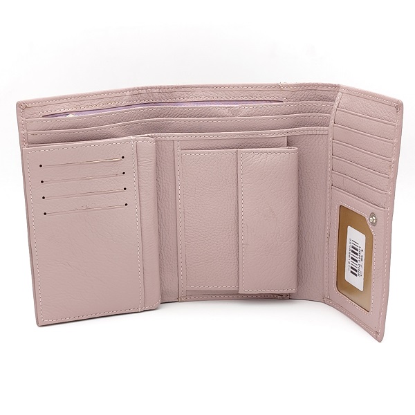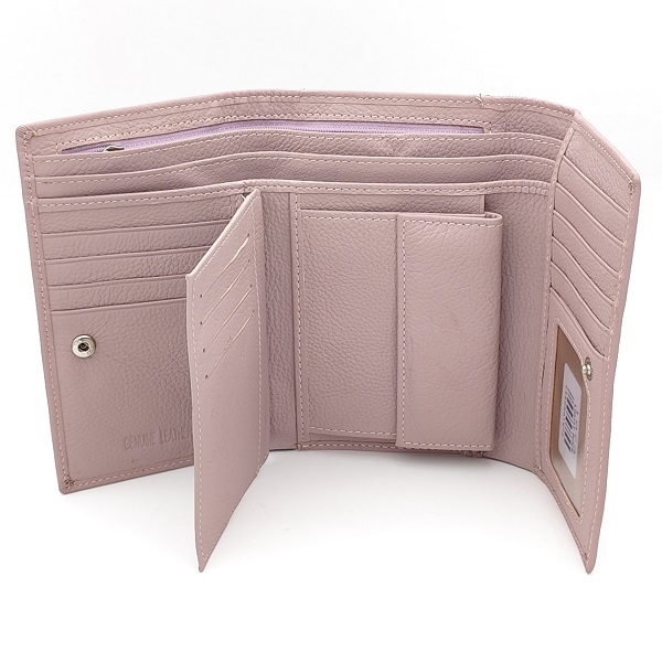 Дамско портмоне с много отделения за карти розово естествена кожа