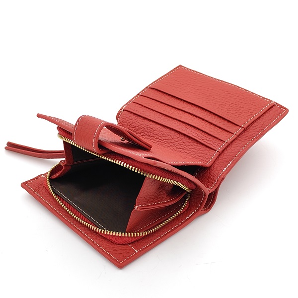 Дамско портмоне червено малко със закопчаване и цип