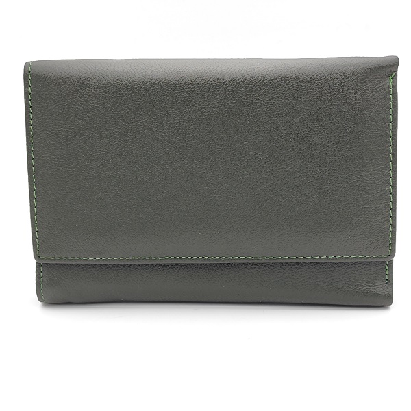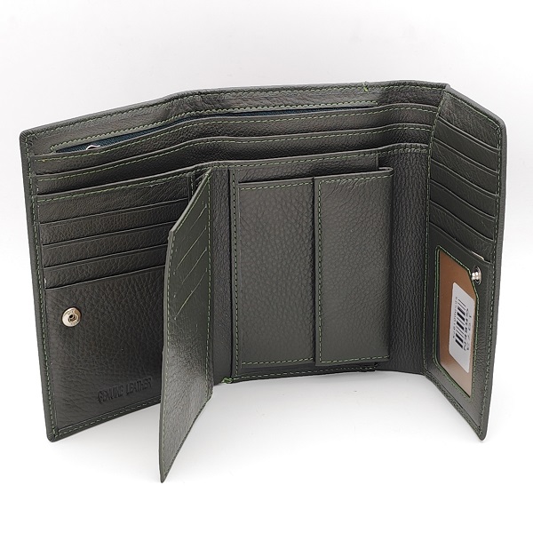 Дамско портмоне естествена кожа с много отделения за карти тъмно зелено