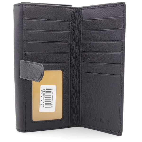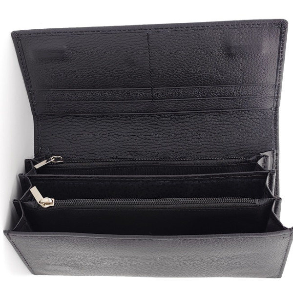 Дамско портмоне естествена кожа черно с много отделения за карти