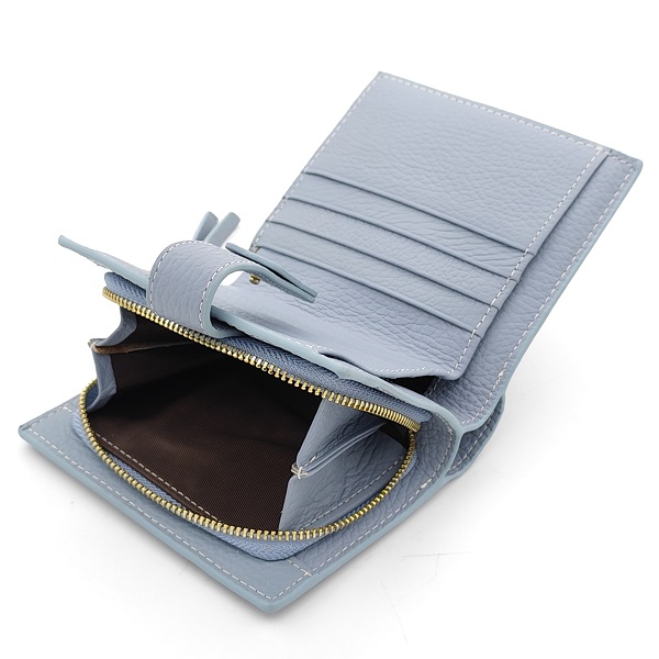 Дамско портмоне малко небесно синьо от естествена кожа с магнитно закопчаване