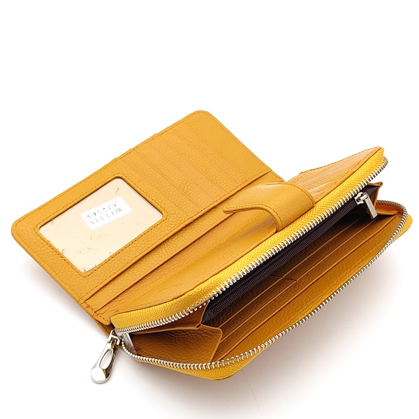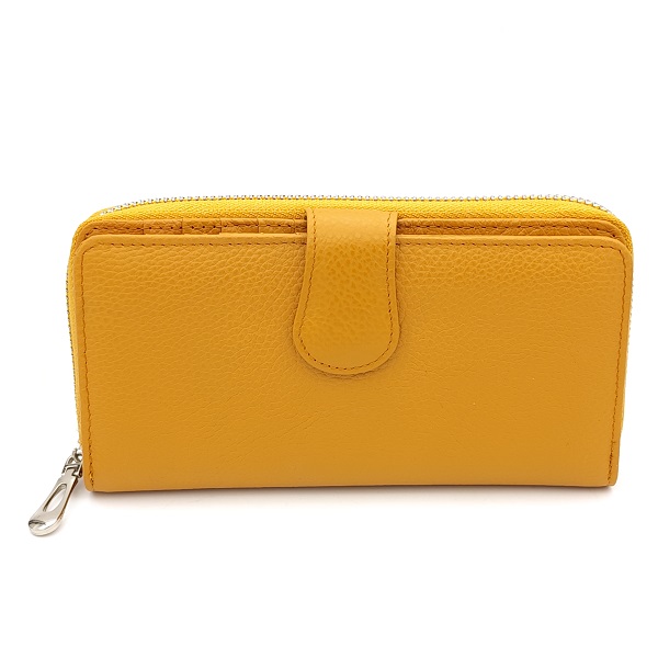Дамско портмоне от естествена кожа със закопчаване горчица