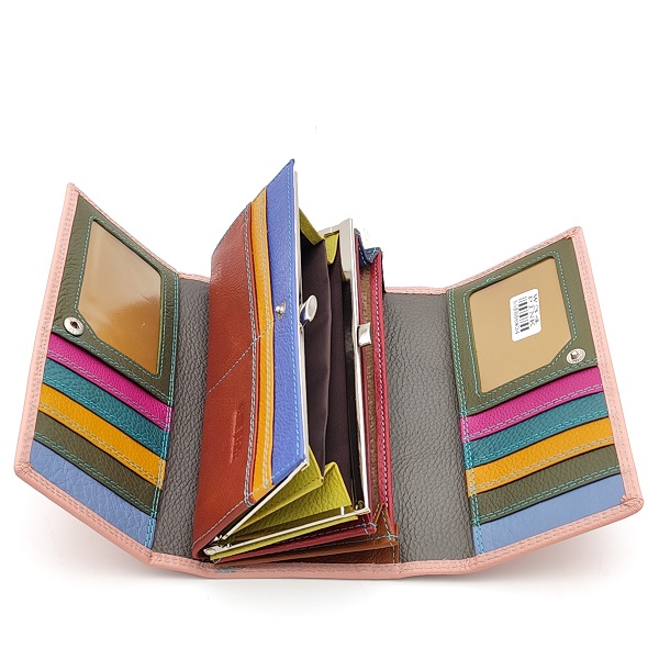Дамско портмоне от естествена кожа с много отделения за карти цвят пудра