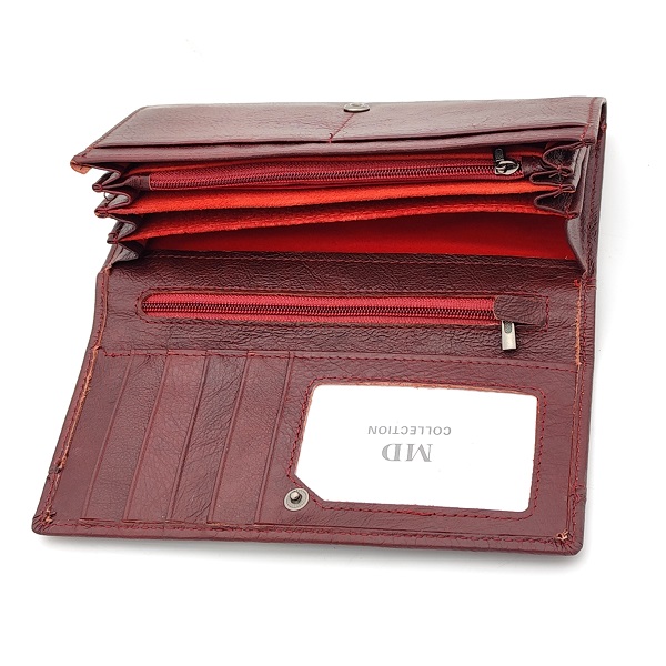 Дамско портмоне от естествена кожа с няколко отделения за банкноти бордо