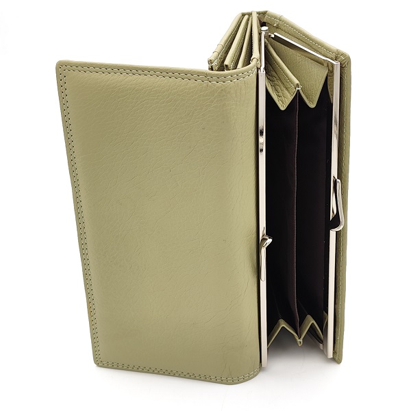 Дамско портмоне от естествена кожа с външен монетник светло зелено