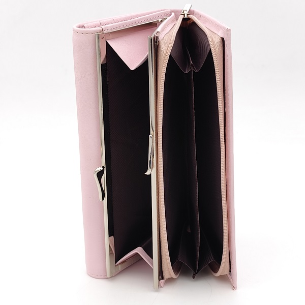 Дамско портмоне от естествена кожа с външен монетник розово