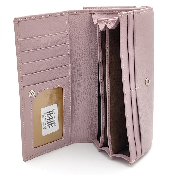 Дамско портмоне от естествена кожа с външен монетник в лилаво