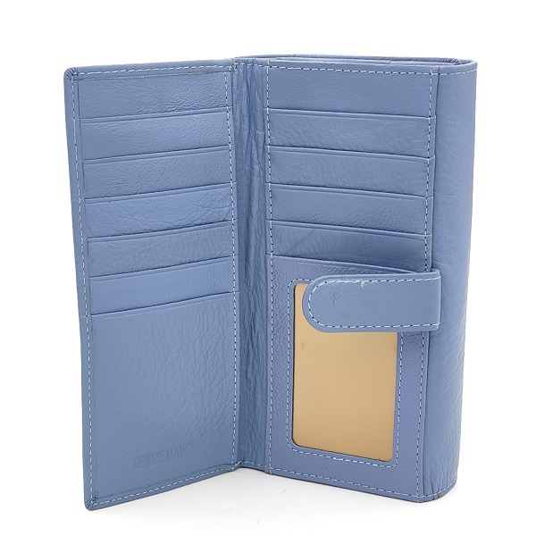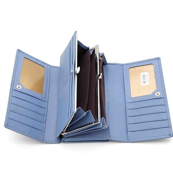 Дамско портмоне от естествена кожа много отделения за карти синьо