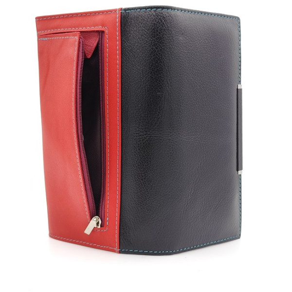 Дамско портмоне от естествена кожа в черно и червено