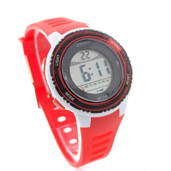 Детски електронен часовник в червен цвят, подходящ за момиче и момче.
