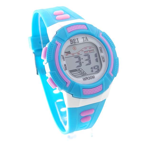 Детски електронен часовник за момиче в светло синьо и розово