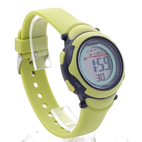 Модерен и удобен детски електронен часовник в светло зелен цвят, подходящ за момчета и момичета. Моделът е със силиконова каишка, която е мека и комфортна за носене през целия ден. Благодарение на малкия корпус, часовникът стои удобно на детската ръка. Дигиталният дисплей показва часа ясно, а моделът е отличен избор, ако търсите детски часовници на добра цена.