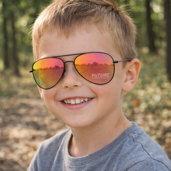 Тези детски слънчеви очила бъбрек с поляризация впечатляват с модерни топли огледални стъкла в златисто-оранжев нюанс, които не само изглеждат стилно, но и осигуряват отличен комфорт при силно слънце.