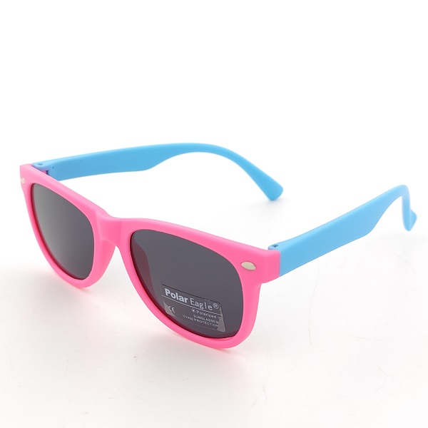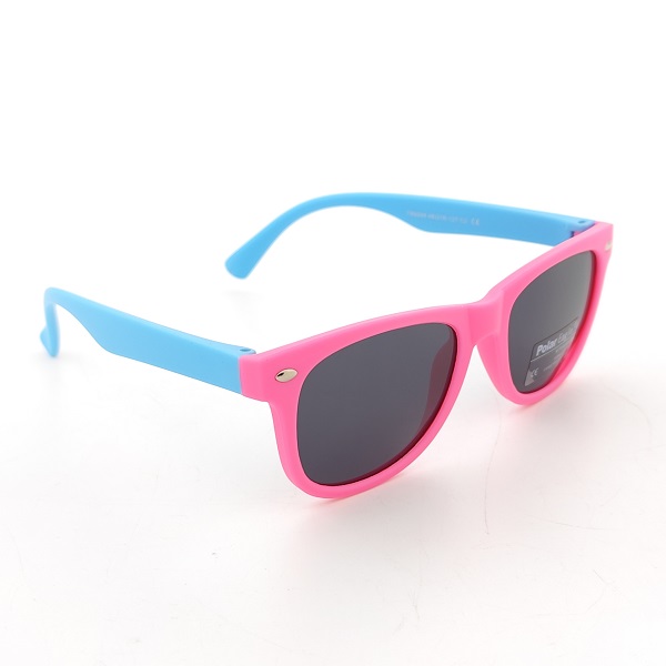 Детски слънчеви очила за момиче с поляризация – нечуплива розова рамка със сини дръжки