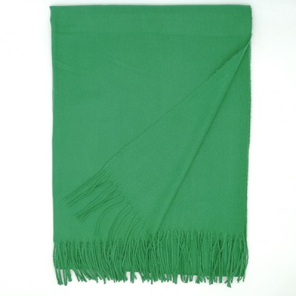 Едноцветен дамски кашмирен шал с ресни по краищата на късата страна.