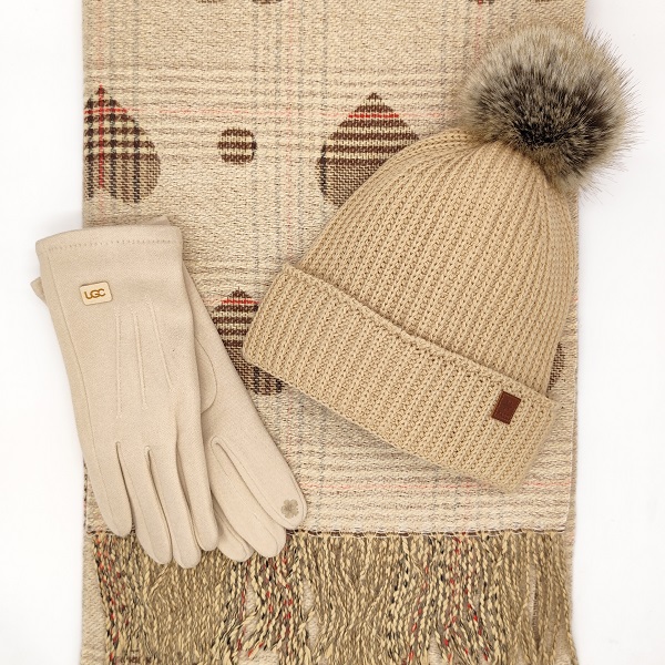 Елегантен дамски комплект шапка шал и ръкавици в нежен бежов цвят – съчетание от топлина, качество и стил. Подходящ за зимата и чудесен избор за подарък за жена за Коледа, рожден ден или имен ден.