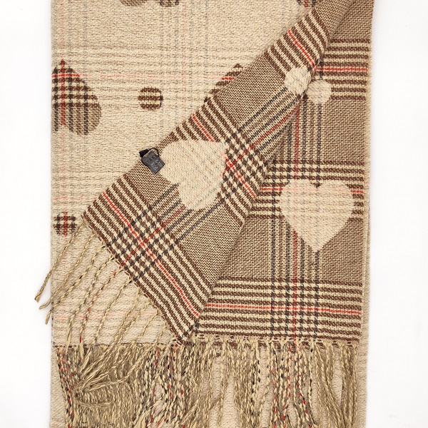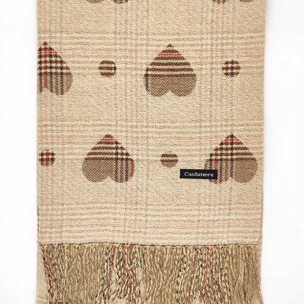 Бежов дамски зимен комплект на сърца-Шапка, шал и ръкавици- Подарък за жена