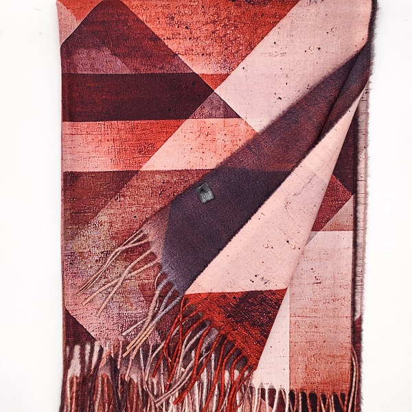 Модерен дамски кашмирен шал в топли нюанси на керемидено, розово и бордо, съчетани в ефектен геометричен дизайн. Изработен от мека кашмирена материя, той осигурява уют и комфорт през студените дни. Красивите дълги ресни добавят движение и стил, превръщайки го в универсален аксесоар за палто, яке или дори рокля.