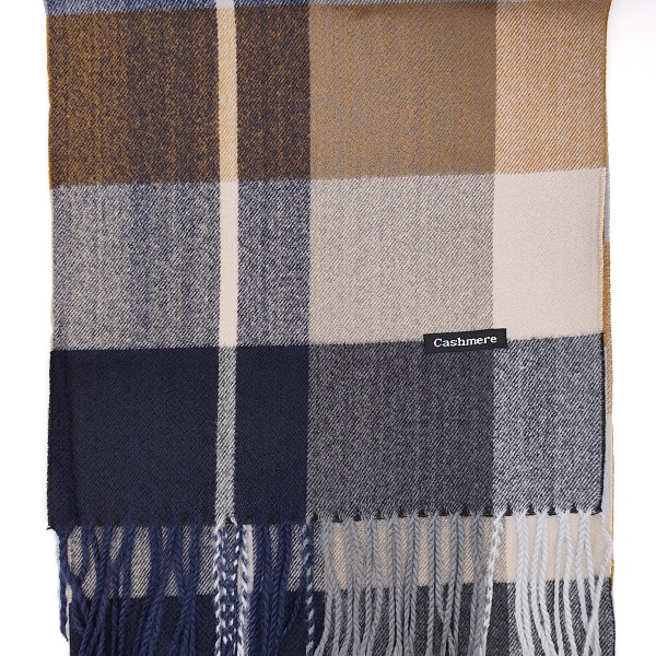 Мъжки шал кашмир в кафявои синьо каре – стил и елегантност