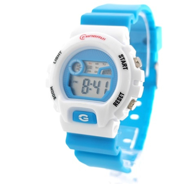 Електронен детски часовник с аларма в синьо и бяло