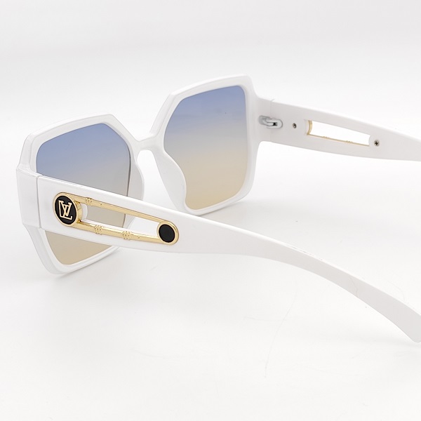 Рамката на тези слънчеви очила е в бял цвят, който придава свеж и стилен вид. Златистият обков на рамката добавя луксозен акцент и изисканост към цялостния дизайн.