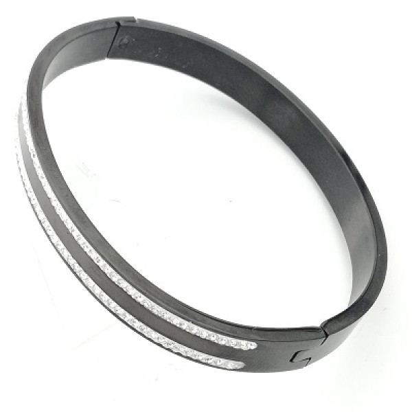 Гривна от медицинска стомана с черна оксидация и два реда бели циркониеви камъни.