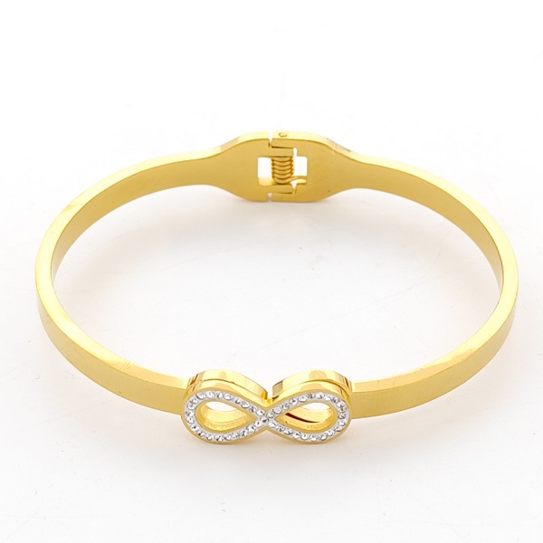 Елегантна дамска гривна от медицинска стомана със символа на безкрайността – символ на вечност и безкрайна елегантност. Изработена в златисто и с твърд дизайн, тази гривна е перфектният аксесоар за жени, които ценят стилните и смислени бижута. Здравата и устойчива медицинска стомана гарантира дълготрайност, докато изчистеният дизайн я прави подходяща както за ежедневието, така и за официални поводи.