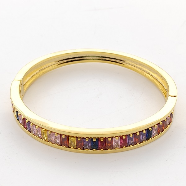 Елегантна дамска гривна от медицинска стомана, съчетаваща издръжливост и стил в едно. Изработена от висококачествена златиста медицинска стомана, гривната е украсена с блестящи цветни камъни, които придават луксозен завършек на дизайна. Със своето удобно закопчаване и изтънчен вид, тя е идеалният аксесоар както за ежедневието, така и за официални поводи.
