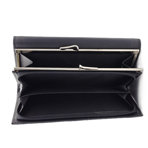 изчистеният дизайн, елегантният черен цвят и висококачествената естествена кожа превръщат това портмоне в стилен аксесоар за всяка модерна жена. То предлага не само изискан външен вид, но и изключителна организация на съдържанието, подходяща за ежедневна употреба и специални поводи.