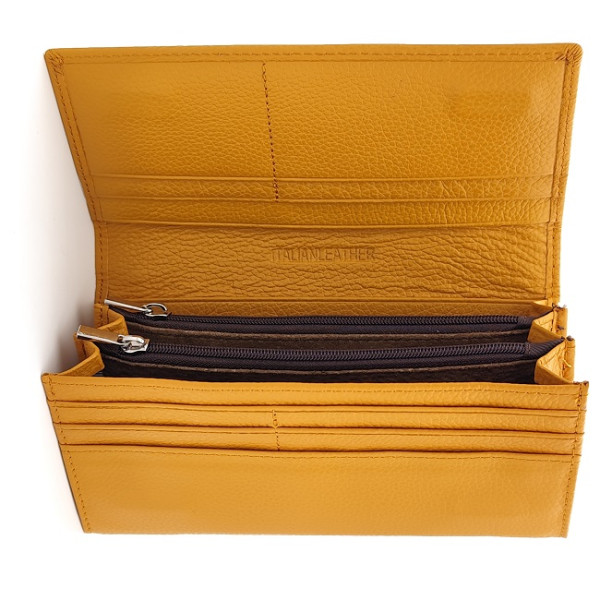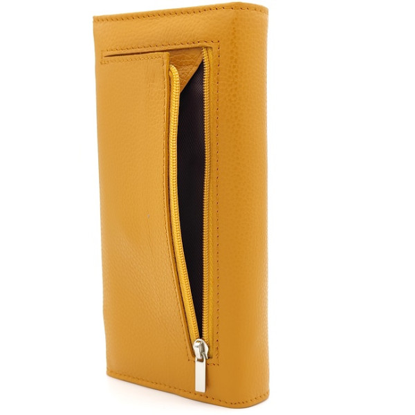 Дамско портмоне от естествена кожа в цвят горчица – стил, удобство и качество всеки ден