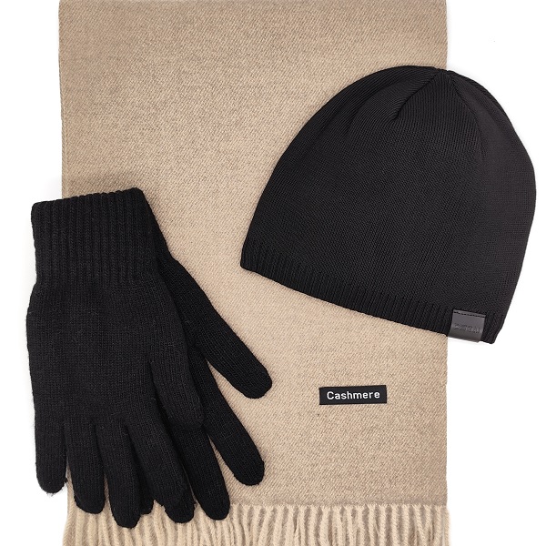 Шал, шапка и ръкавици-Мъжки комплект в бежово и черно