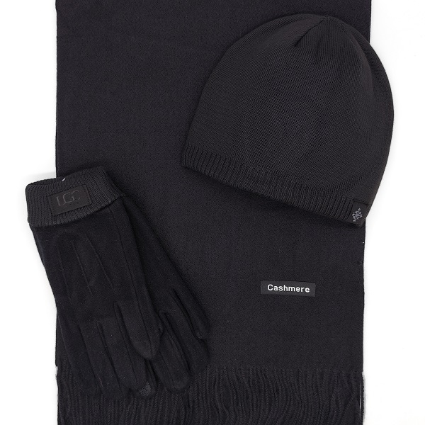 Шал шапка и ръкавици в черно-Класически мъжки комплект