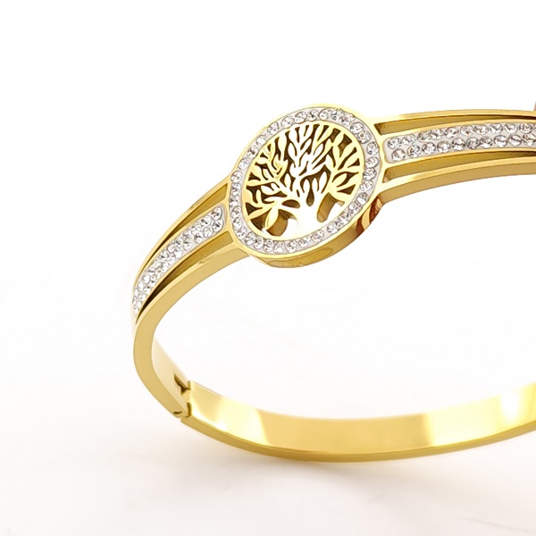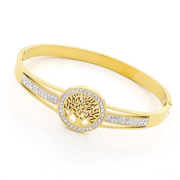 Стилна и елегантна дамска гривна от медицинска стомана в златист цвят с декорация Дървото на живота – символ на сила, хармония и ново начало.
