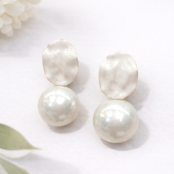Луксозни дамски обеци бели висящи на винт