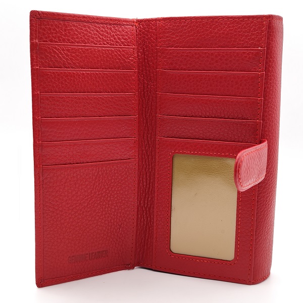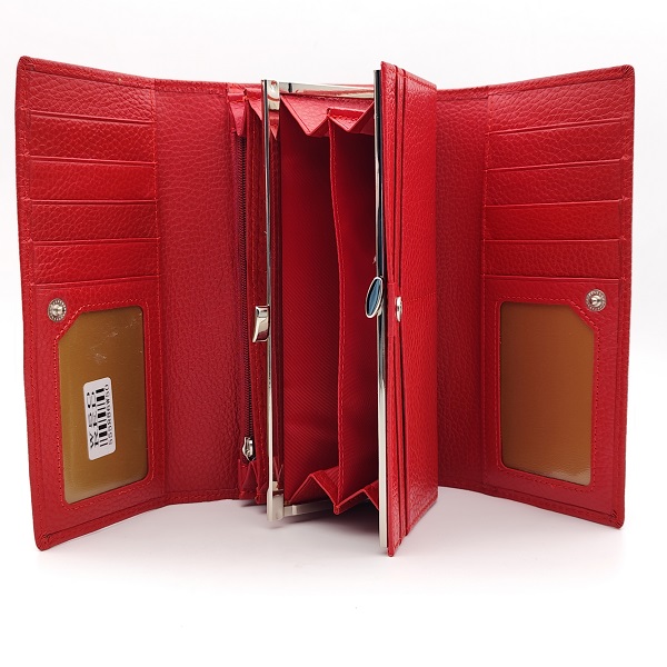 Луксозно дамско портмоне естествена кож а червено с много отделения