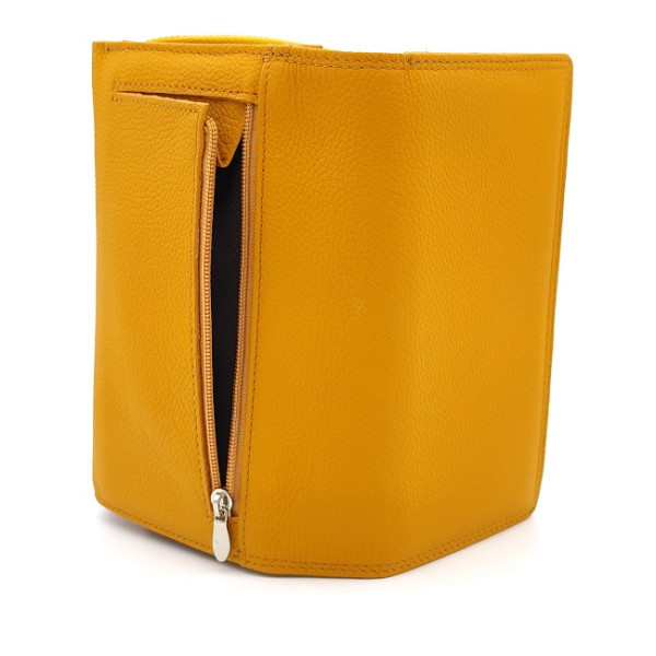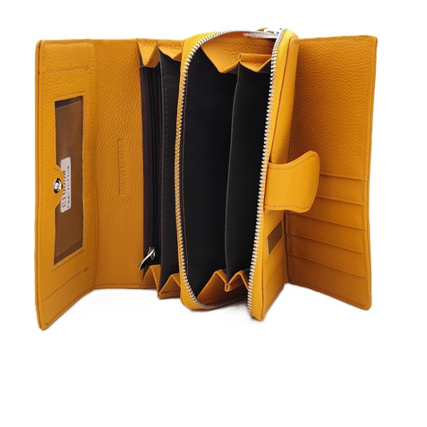 Дамско портмоне от естествена кожа – топъл жълт нюанс ( горчица ) и впечатляващо вътрешно пространство