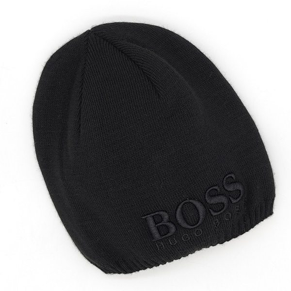 Мъжка зимна шапка без подгъв в черно с релефна бродерия