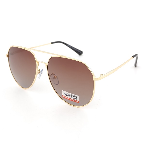 Моделът е с елегантна метална рамка в златист цвят и кафяви поляризирани лещи, които придават класическа и стилна визия.