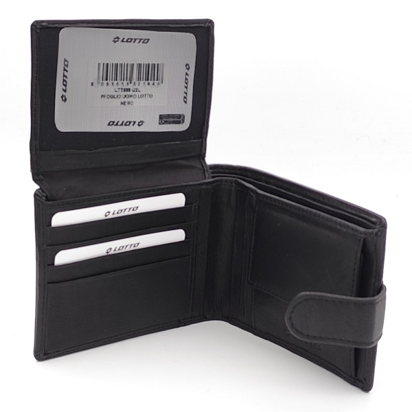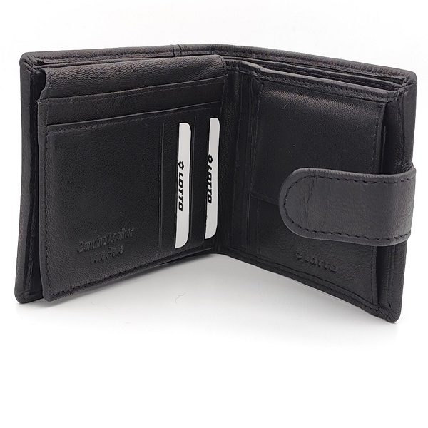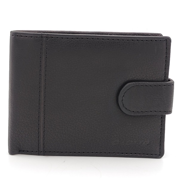 Компактен и практичен портфейл с изчистен, всекидневен стил. Изработен е от естествена кожа в класически черно, с деликатен вертикален декоративен шев на лицевата страна за фини контрастни детайли. Форматът е хоризонтален, което улеснява достъпа до банкноти и карти, а размерът остава удобен за джоб.
