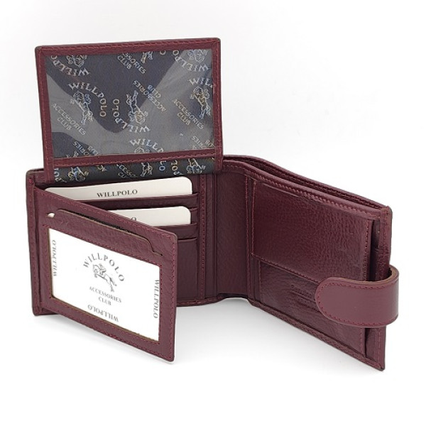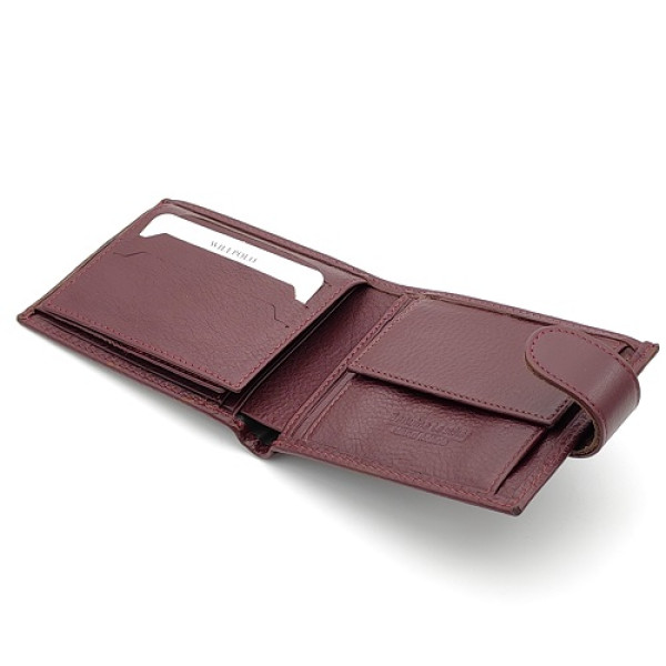 Стилен и практичен мъжки портфейл от телешка естествена кожа в цвят бордо. Подходящ за всекидневна употреба, съчетава удобство и качество в едно.