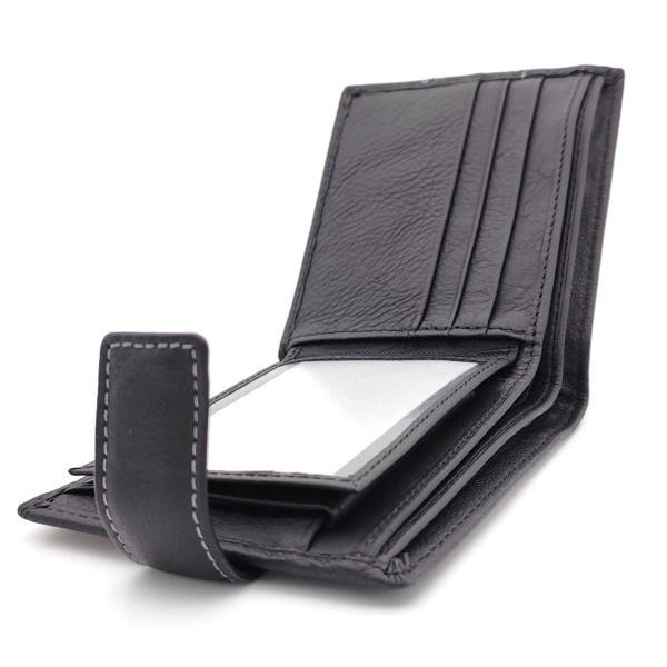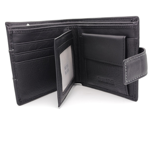 Мъжки портфейл от естествена кожа с декоративни бели шевове, черен