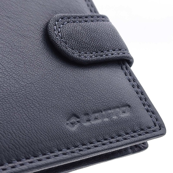 Мъжки портфейл изработен от естествена кожа в елегантно тъмно синьо. Хоризонтален- позволява лесен достъп до банкноти и карти, без да се губи компактният размер.