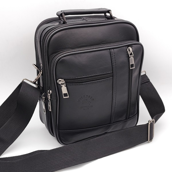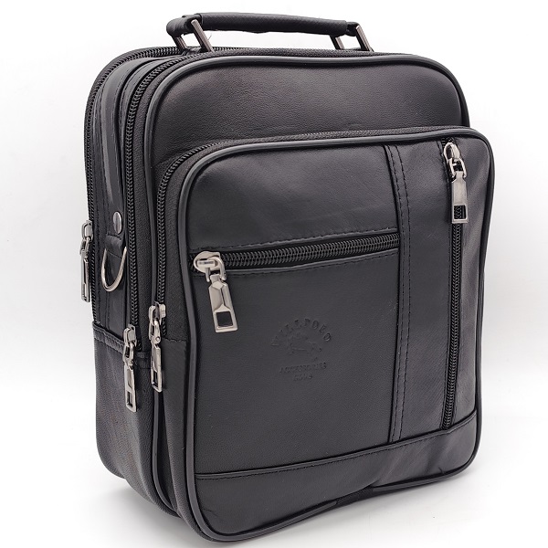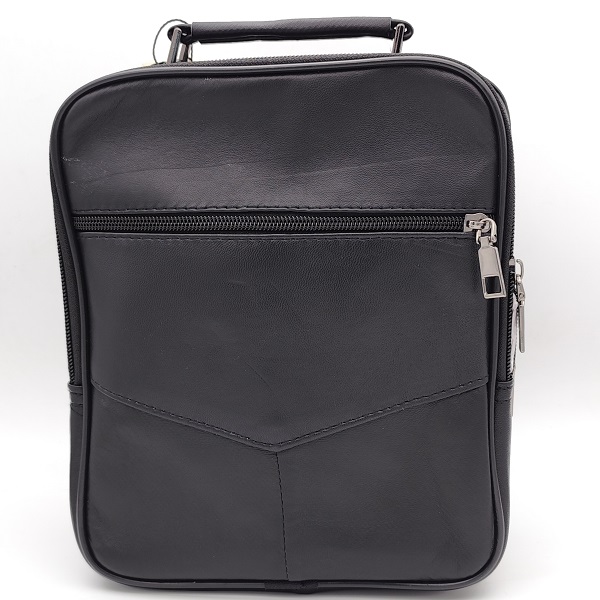 Мъжка чанта с три предни ципа и две отделения в черно