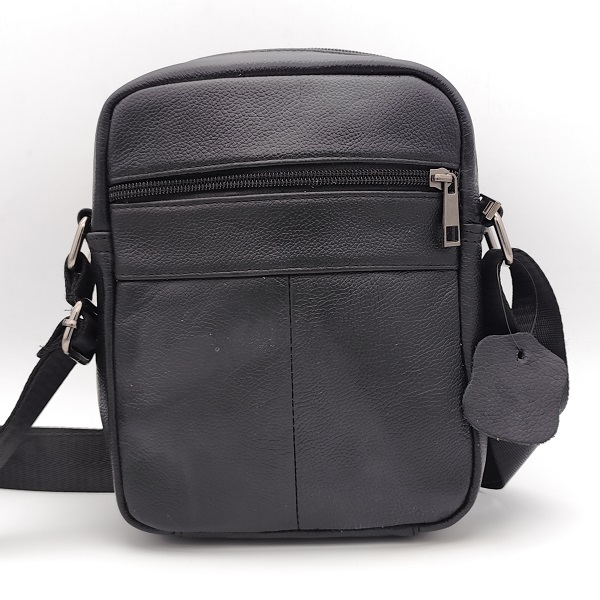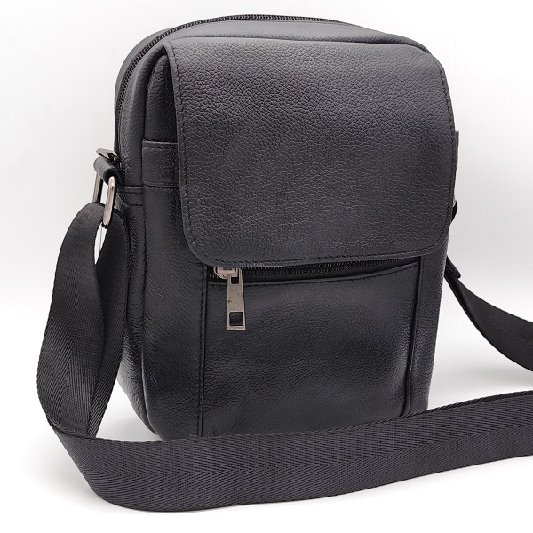Мъжка чанта от естествена кожа с голямо капаче и преден цип – изчистен модел за през рамо